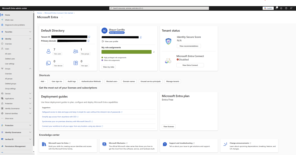 In this lab, I built a sandbox Microsoft Entra ID environment and intentionally misconfigured it to simulate real world IAM security risks. I then audited the environment, identified 5 critical issues and applied best-practice remediations.
